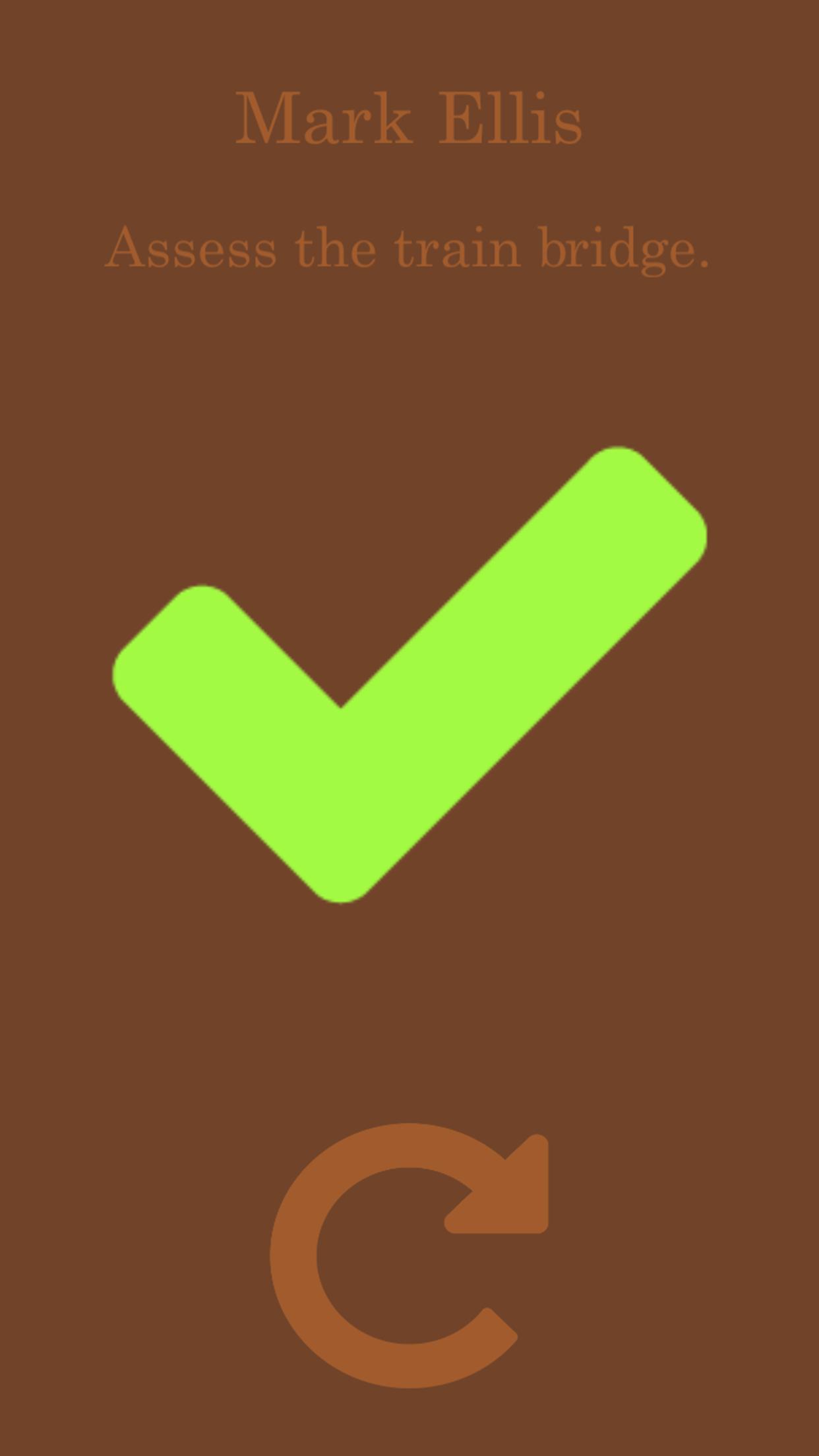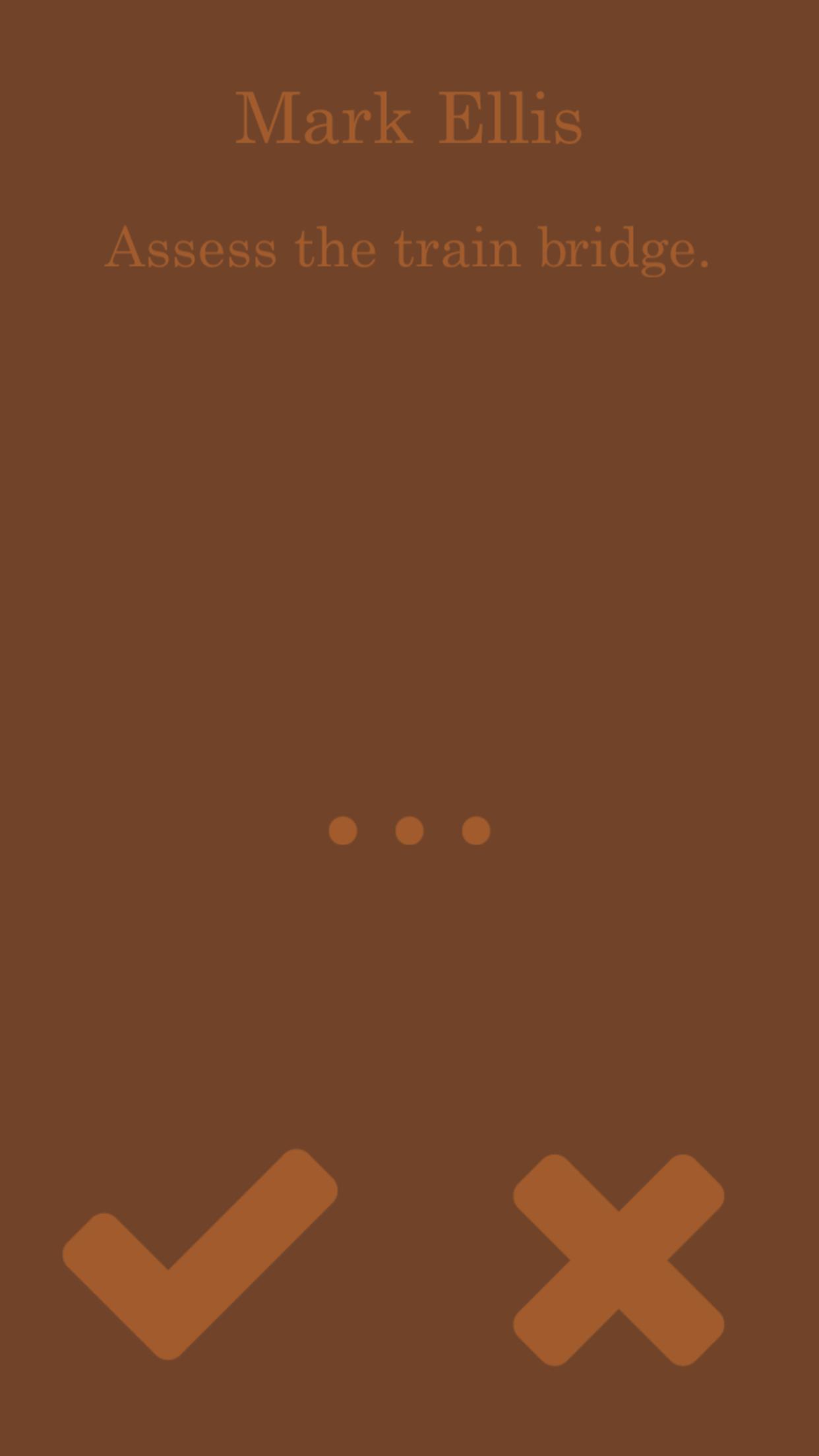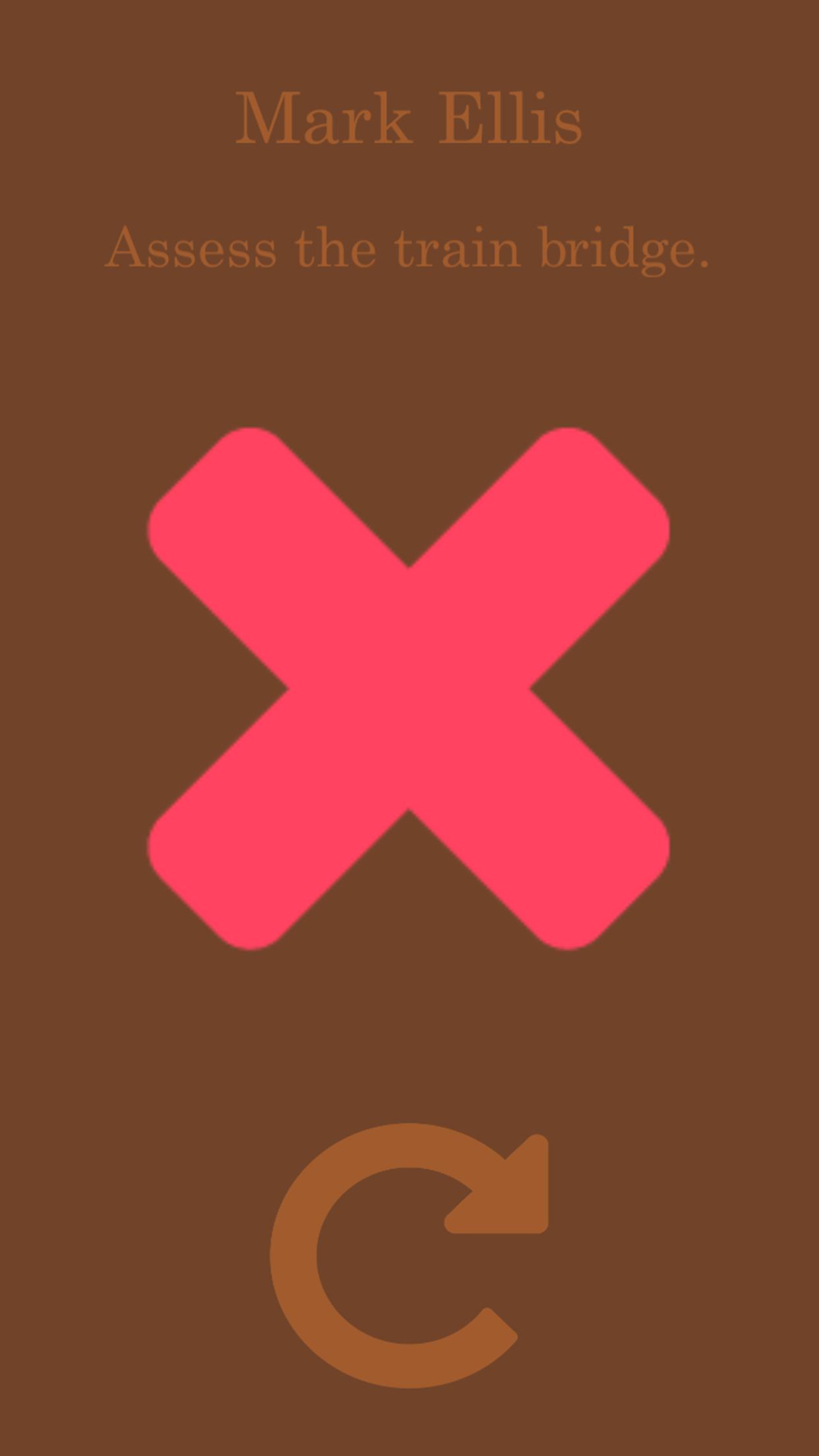 أنت مارك إليس ، مفتش جسر القطار. تقييم الجسور على سلامتها الهيكلية ومعرفة ما إذا كان القطار يصل بأمان إلى الجانب الآخر.